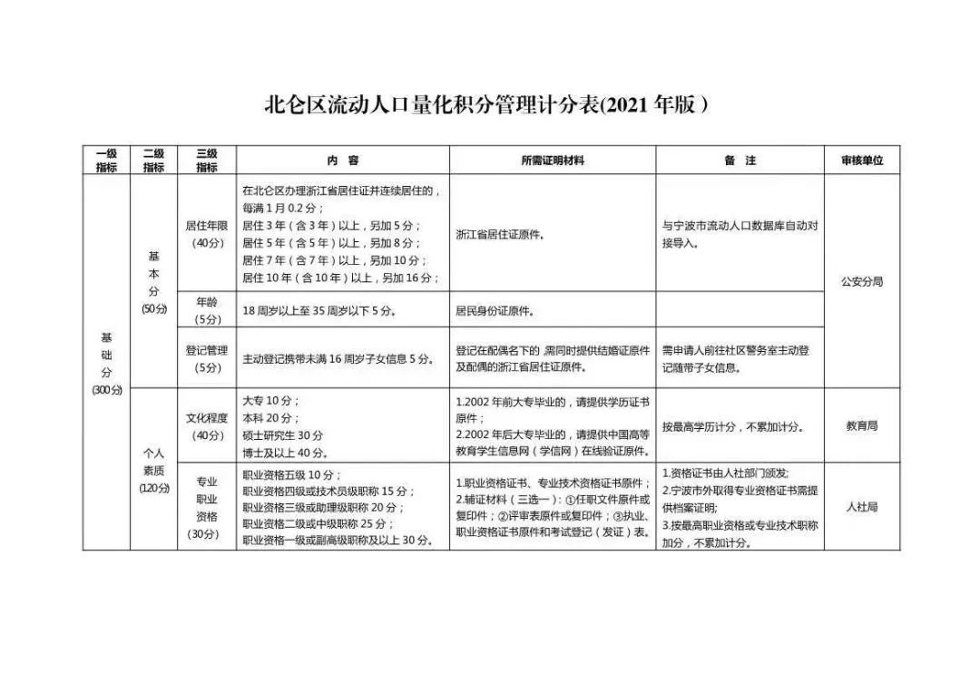 2021年北仑区量化积分计分标准(2020年北仑积分)