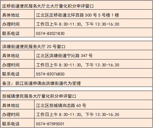 江北区流动人口量化积分窗口办公地址及咨询电话