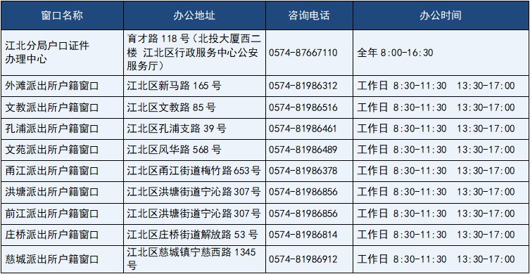 宁波江北区2020年办理地点大汇总(地址+咨询电话)
