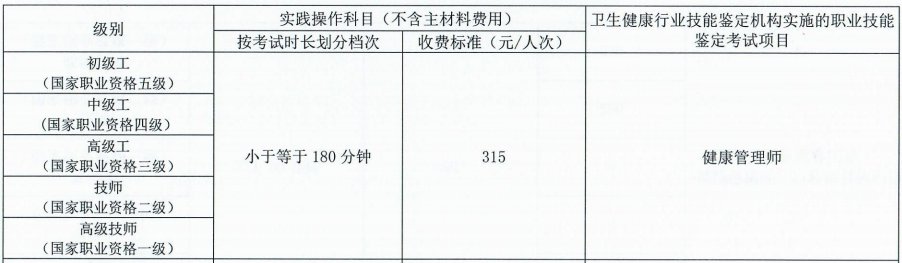 健康管理师职业技能鉴定考试费按照考试成本补偿原则制定,分为理论科目考试费、实践操作科目考试费和综合评审科目考试费。