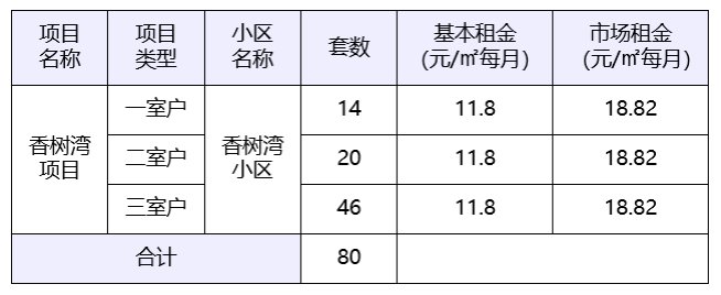 房源及基本租金标准