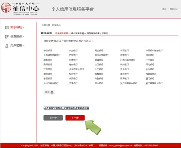 用户点击安装控件并选择相应数字证书证书进行验证,插入数字证书,点击"下一步"。