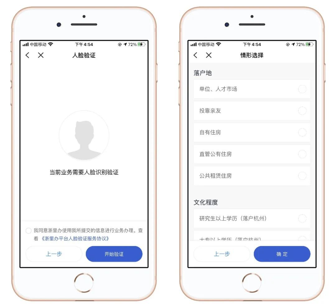 完成人脸识别验证,选择情形。