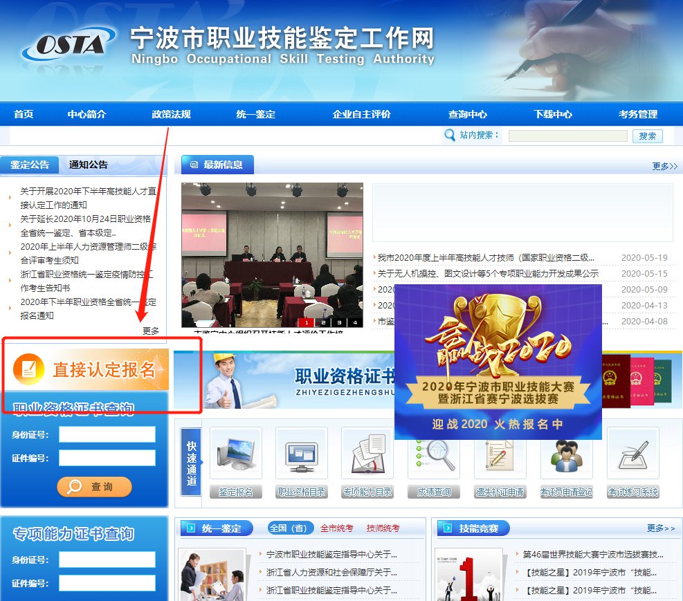 直接认定申报由个人通过“宁波市职业技能鉴定工作网”(点击进入)进行。