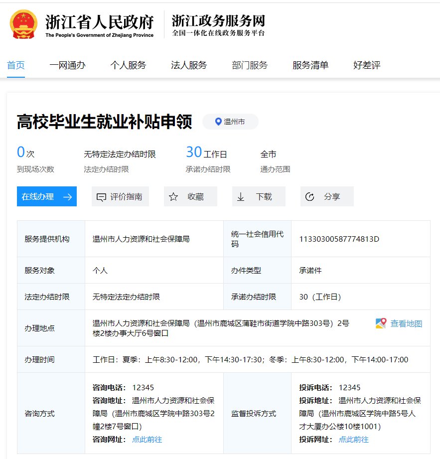 温州市区高校毕业生就业补贴申请时间2022
