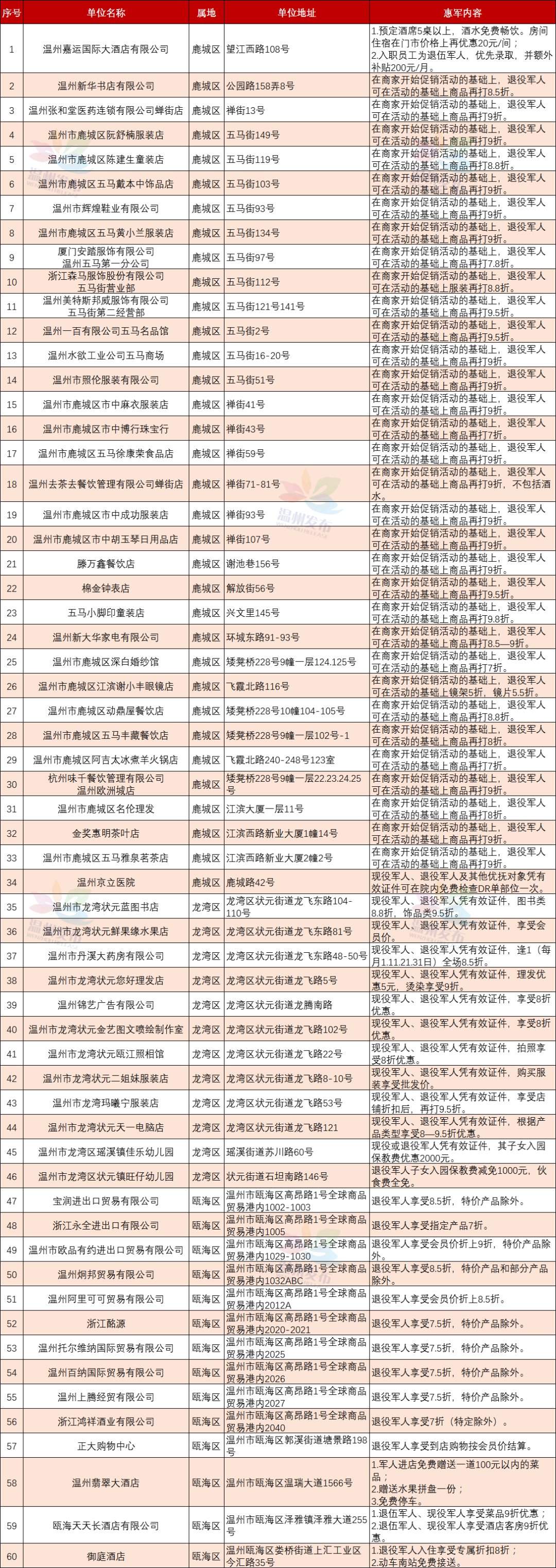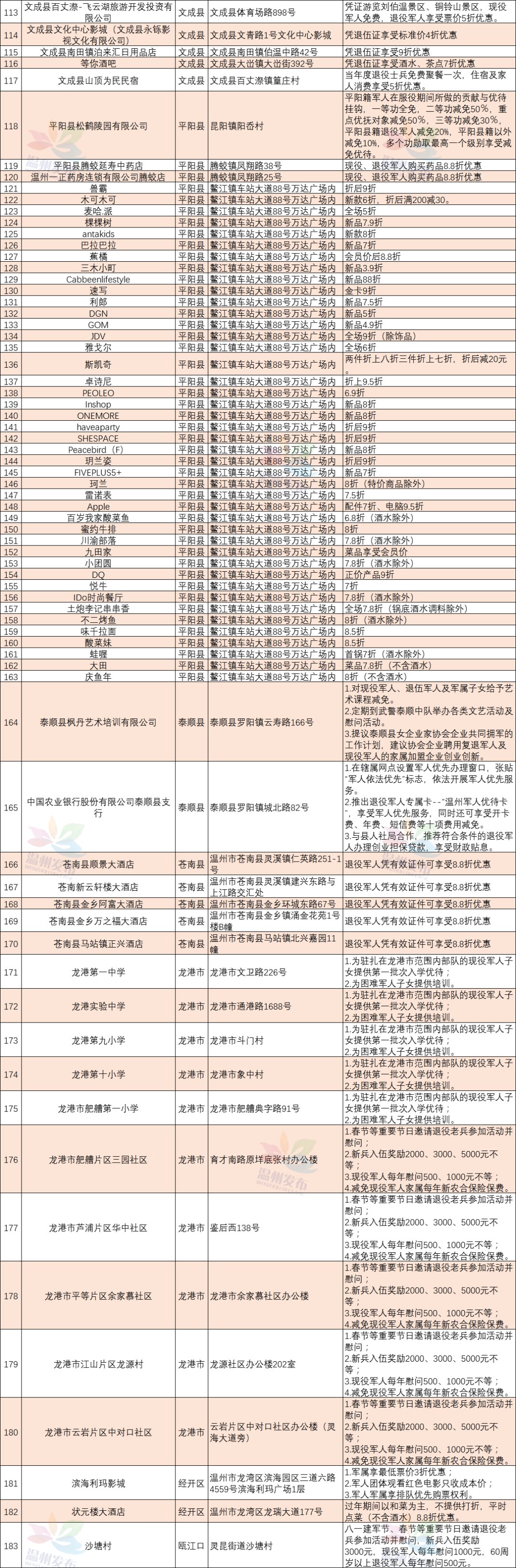温州现役军人、军属和退役军人享受社会组织惠军清单公布