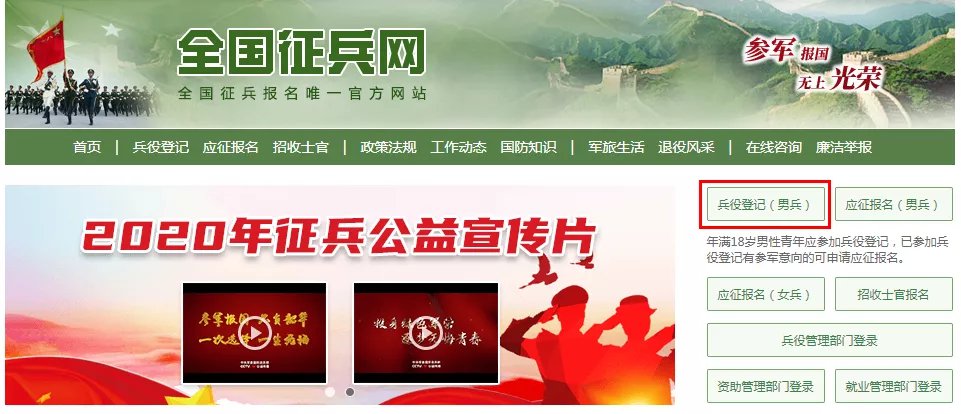 电脑在全国征兵网首页右侧,点击“兵役登记(男兵)”