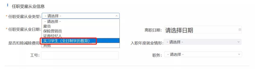 1、人员信息采集:任职受雇类型选择“实习学生”;