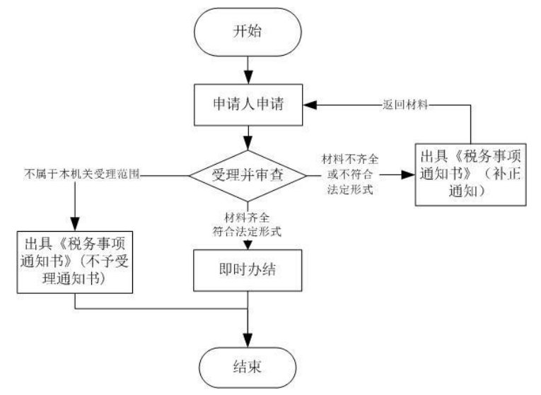 对纳税人提交资料齐全、符合法定形式的,受理申请;纳税人提交资料不齐全或不符合法定形式的,制作《税务事项通知书》(补正通知),一次性告知纳税人需补正的内容;依法不属于本机关职权或本业务受理范围的,制作《税务事项通知书》(不予受理通知),告知纳税人不予受理的原因。