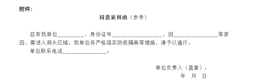 (三)卡口管控措施解除前,“四返”人员(除湖北等重点地区外)凭主管单位出具的同意返回函件,经卡口查验登记后给予通行。