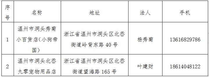 温州市洞头区犬只狂犬病免疫、芯片植入和准养登记工作定点单位名单