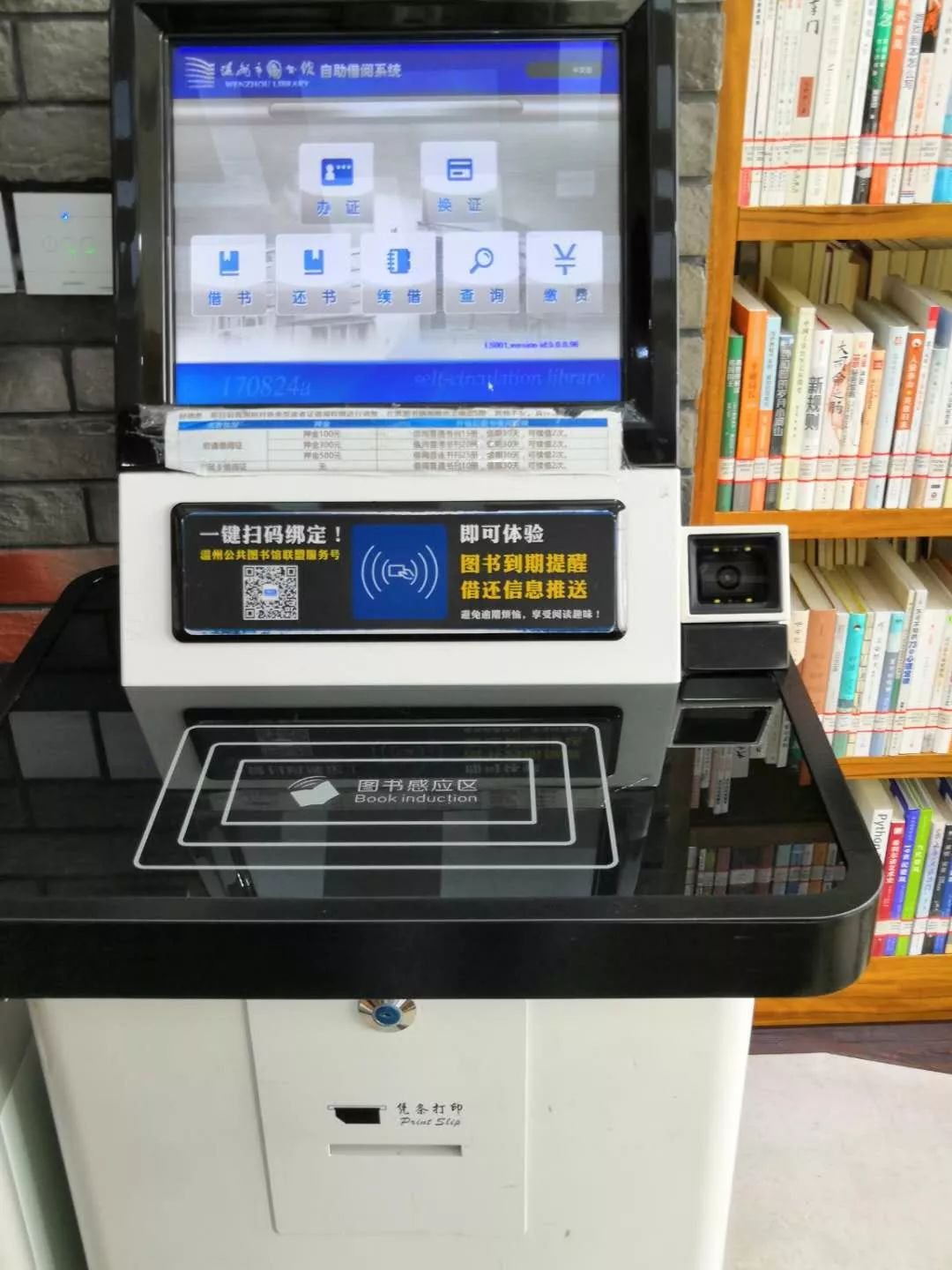 温州每家城市书房、百姓书屋门口,都有一台自助办证机,市民游客可凭本人身份证或者市民卡登记办证。