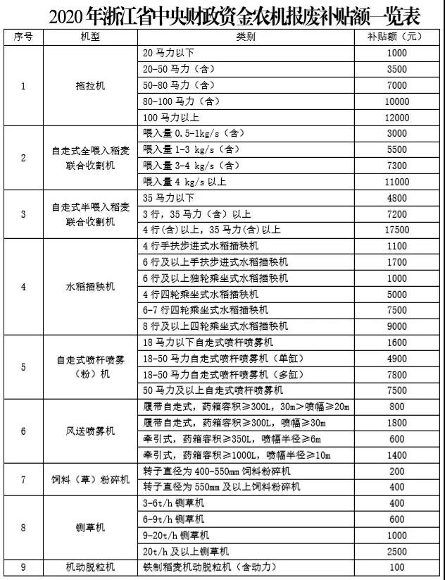 1、老旧拖拉机和联合收割机报废,需达到《浙江省拖拉机和联合收割机报废更新管理办法》(浙农机发〔2019〕6号)规定的报废使用年限;