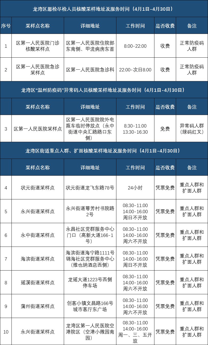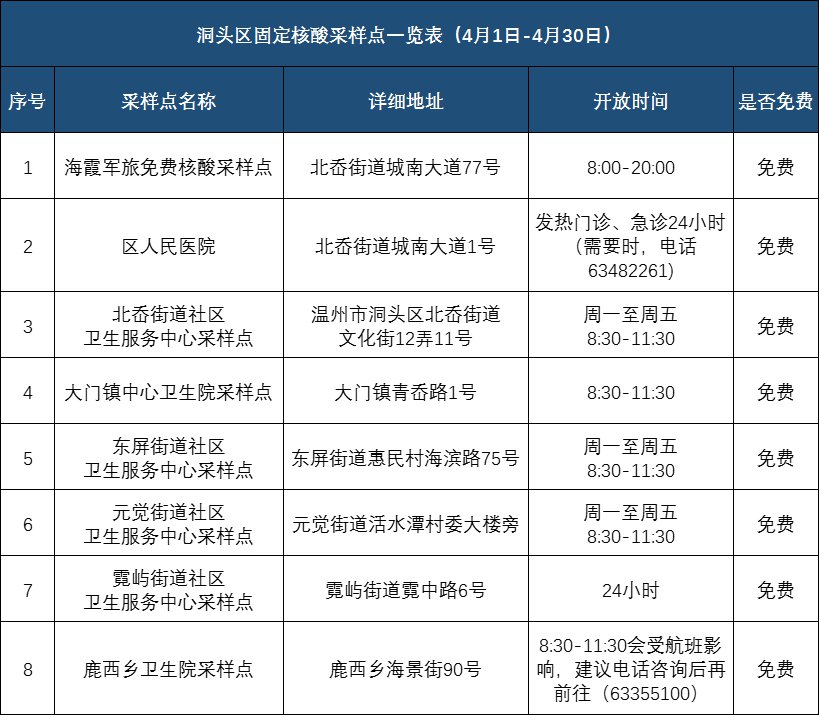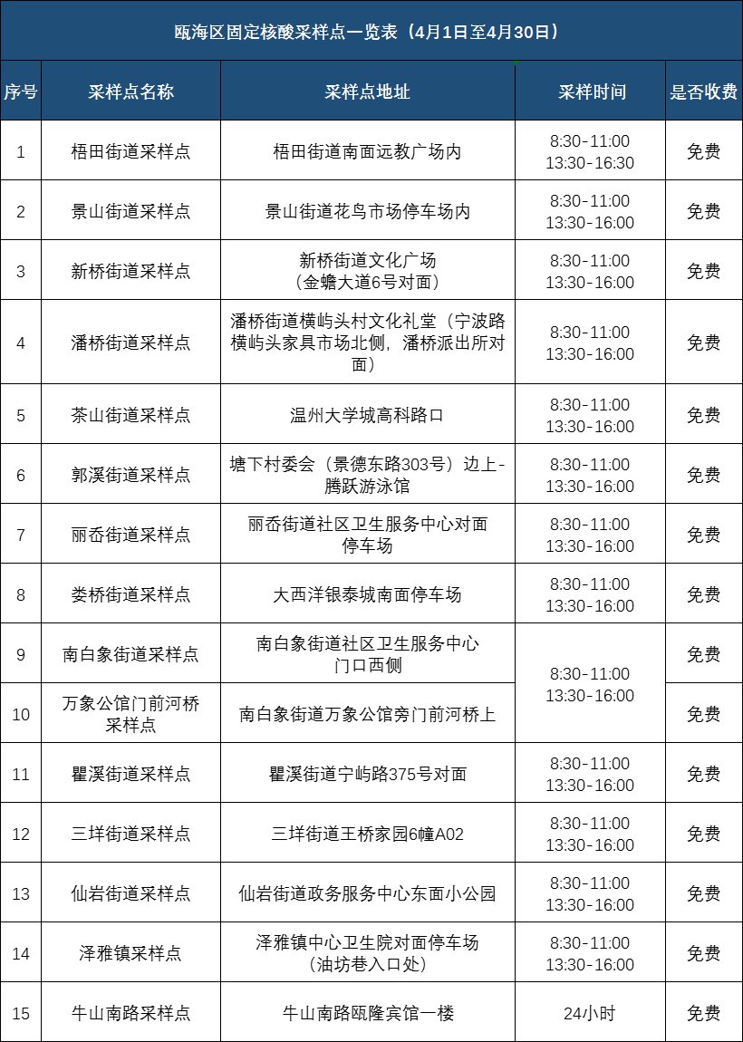 2022年4月份温州市全市核酸检测点公布(2021年温州核酸检测在哪里可以做)