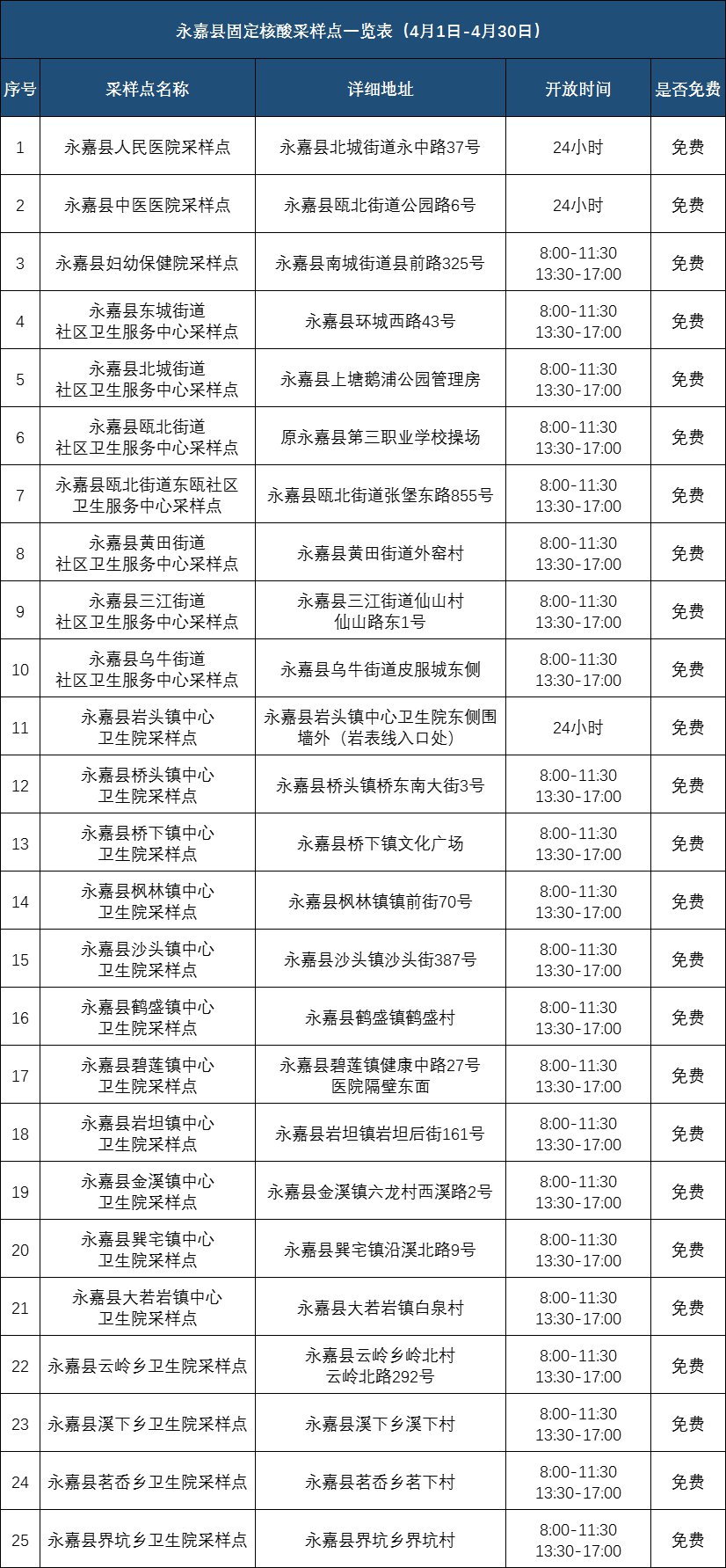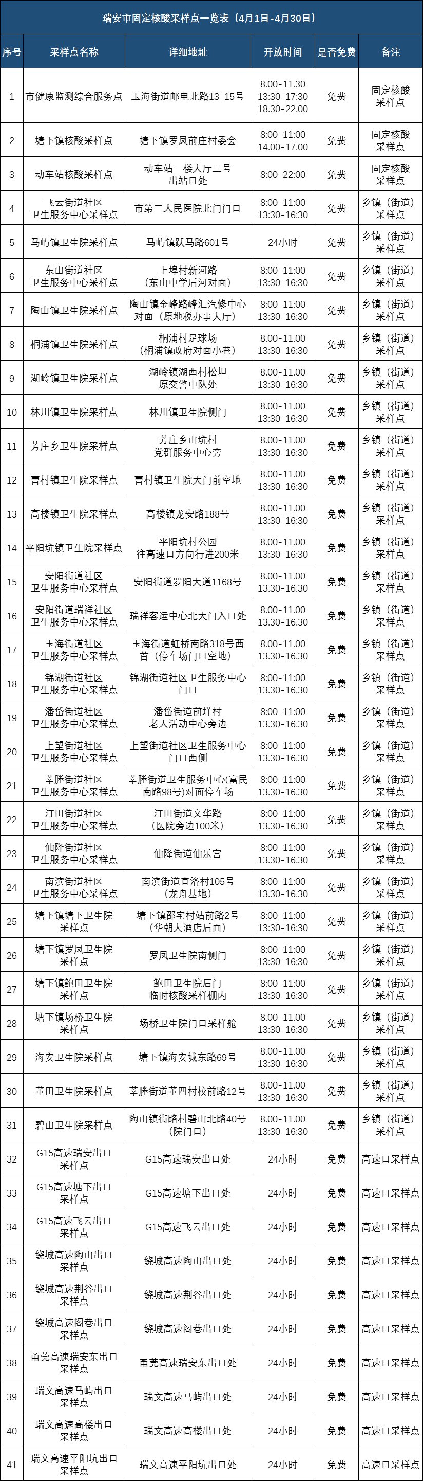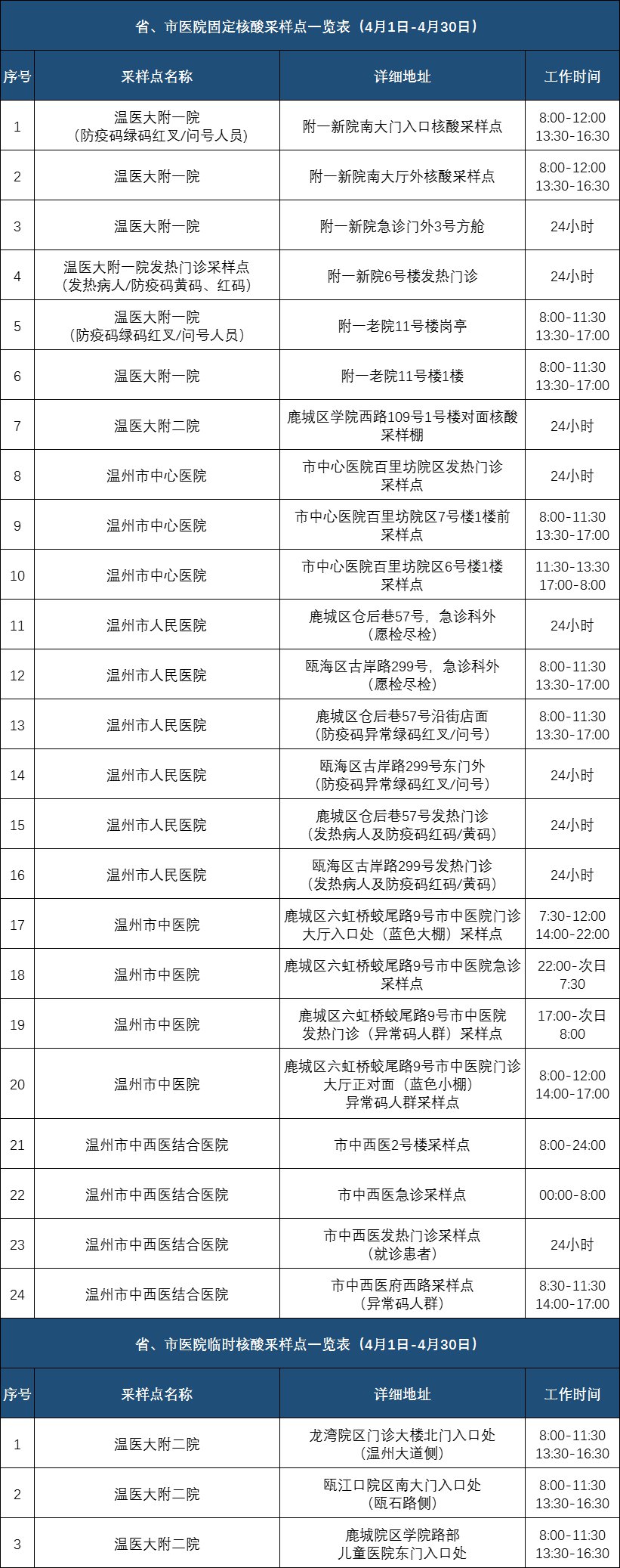 2022年4月份温州市全市核酸检测点公布(2021年温州核酸检测在哪里可以做)