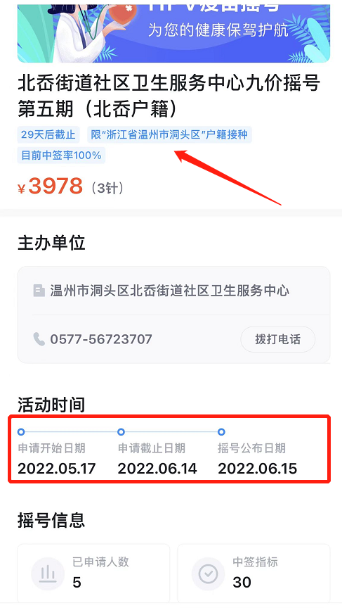 5、请仔细阅读发布的活动规则,如申请中签后,因不满足活动中所描述的接种要求,以活动发布方的处理结果为准,平台概不负责。