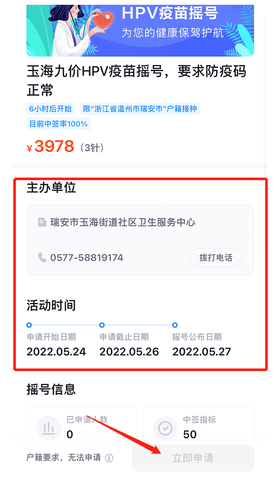 瑞安市 玉海街道9价HPV疫苗摇号