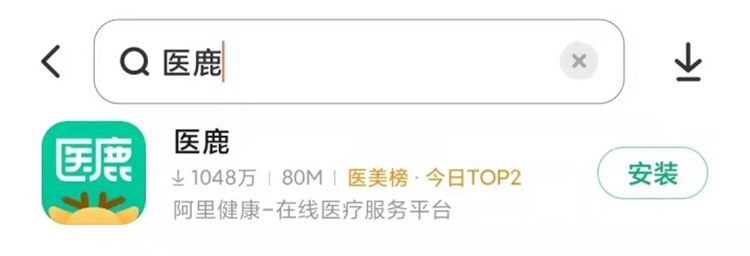 ① 安卓手机:在应用市场直接搜索“医鹿”下载