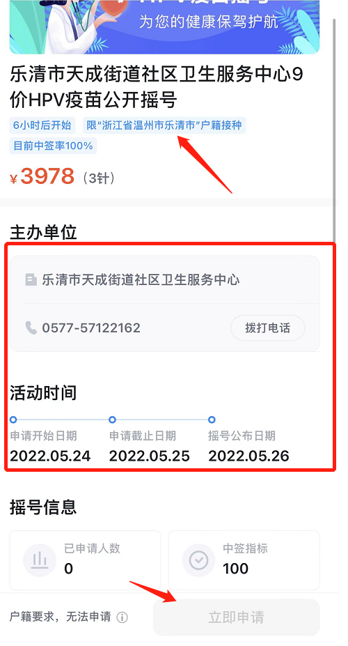 乐清市 天成街道9价HPV疫苗摇号