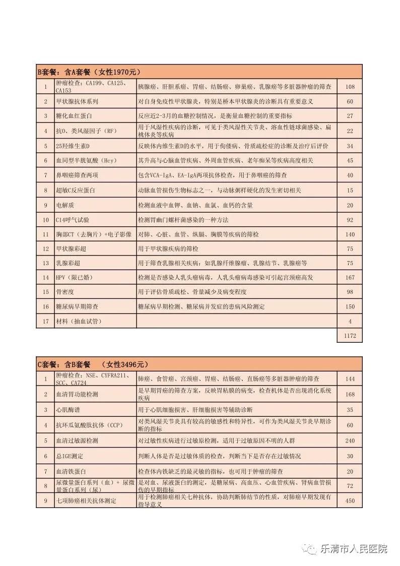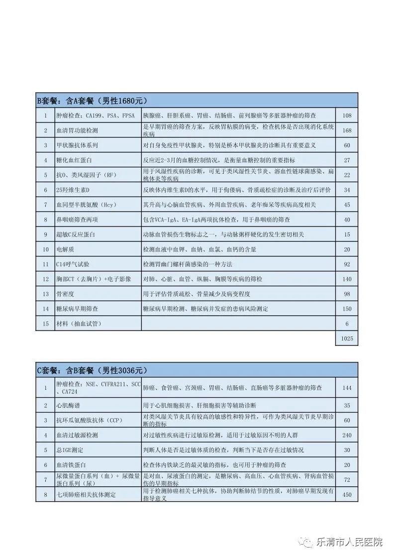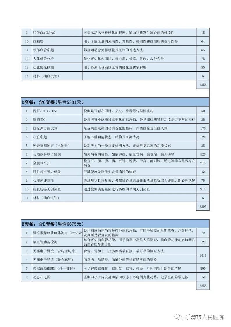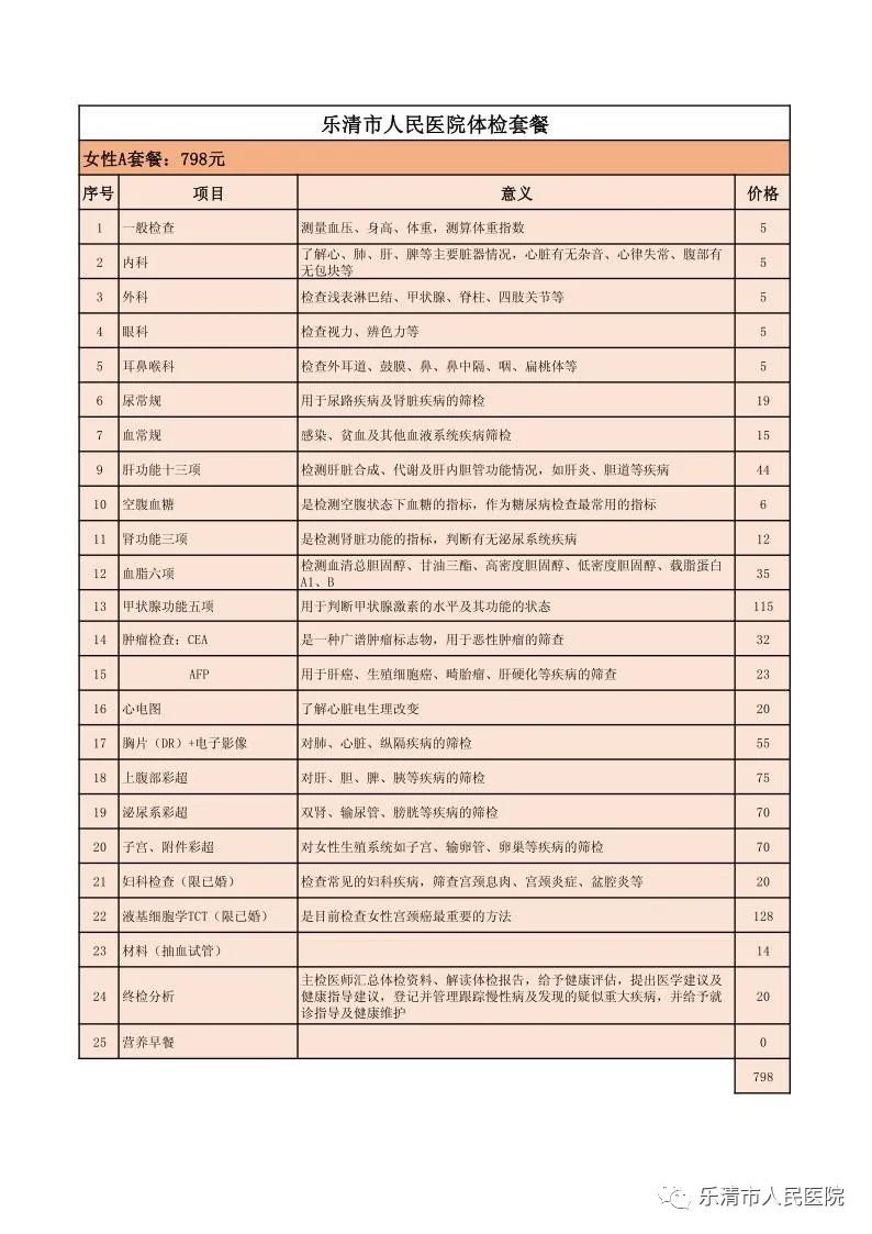 温州乐清人民医院健康体检中心2022年体检套餐(附咨询方式)