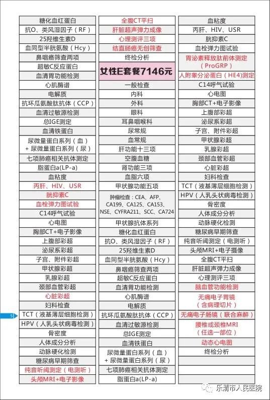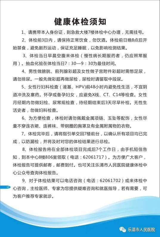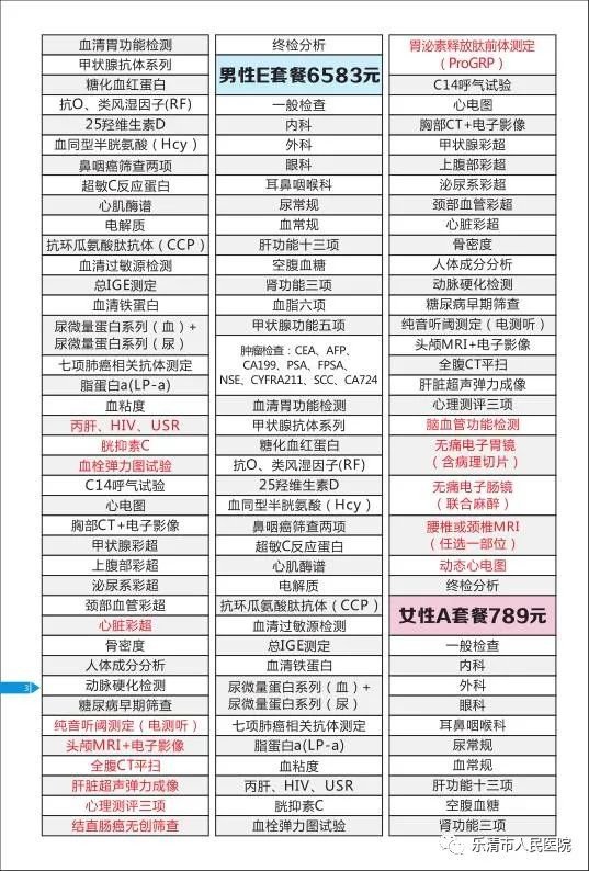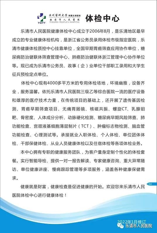 乐清市人民医院新的体检套餐从2021年12月20日开始实施