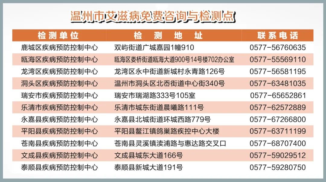 温州市艾滋病免费检测点地址+电话+网上咨询平台
