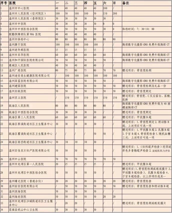 温州市区企事业退休人员免费体检对象+时间+项目+医疗机构