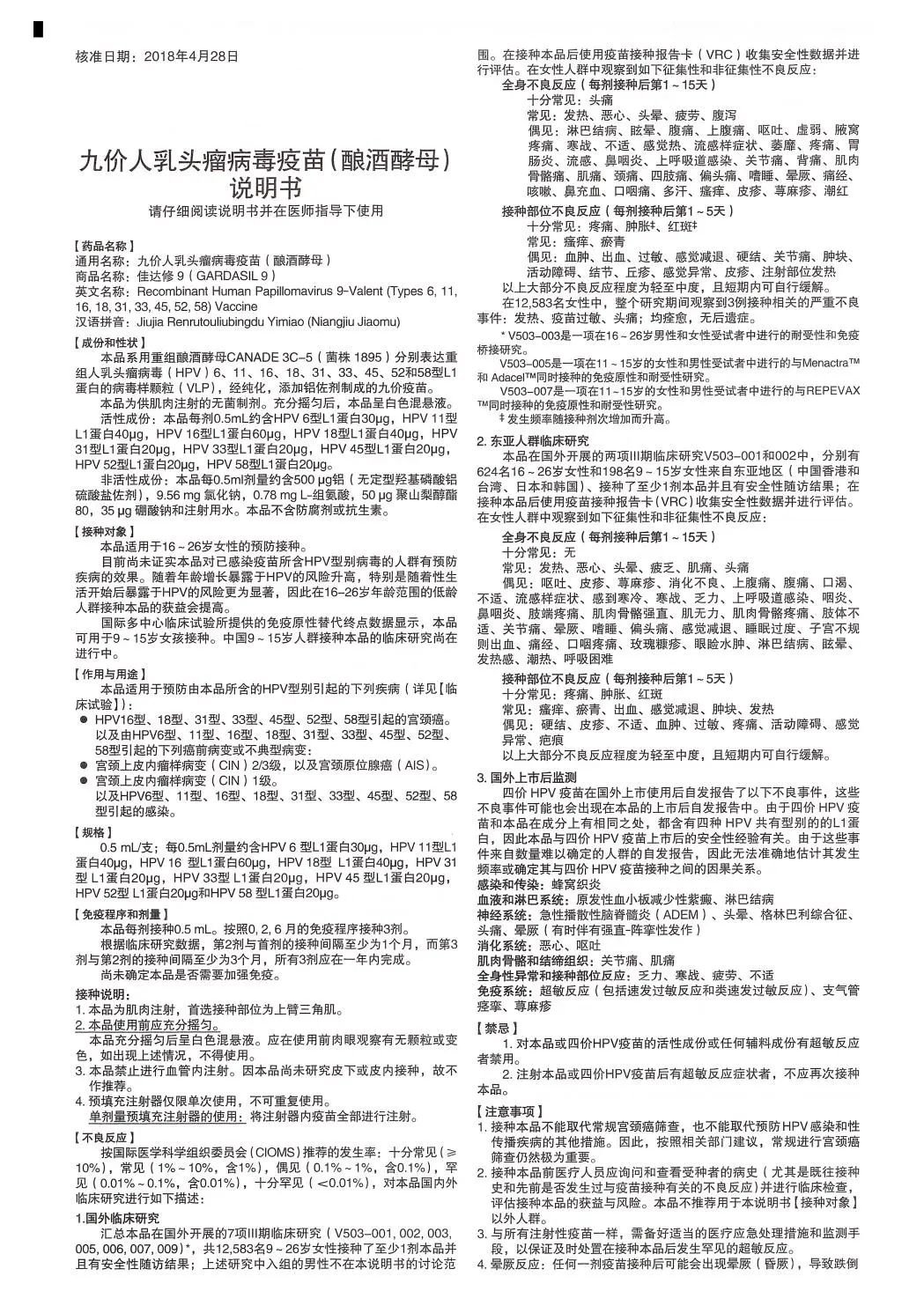默沙东九价hpv疫苗说明书