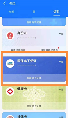 打开支付宝—卡包—证件——医保电子凭证或健康卡,出示二维码即可。