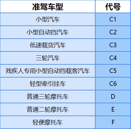 60岁以上的驾驶员的准驾车型:9种