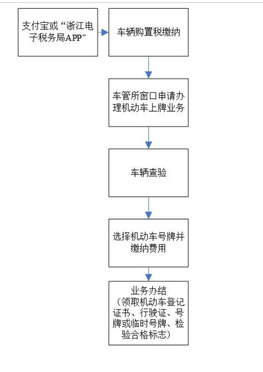 办理方式:申请人通过在线缴纳车辆购置税,并将机动车开至公安交管部门车辆管理所查验,合格后缴费并领取机动车号牌、行驶证、登记证书等证件。