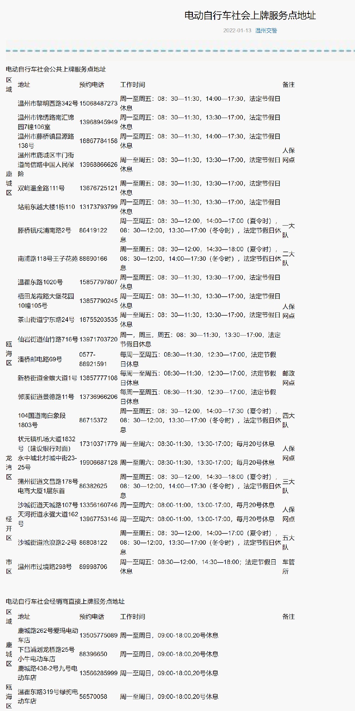 2022温州市区电动车上牌照在哪里办(浙江温州电动车上牌照需要什么手续)