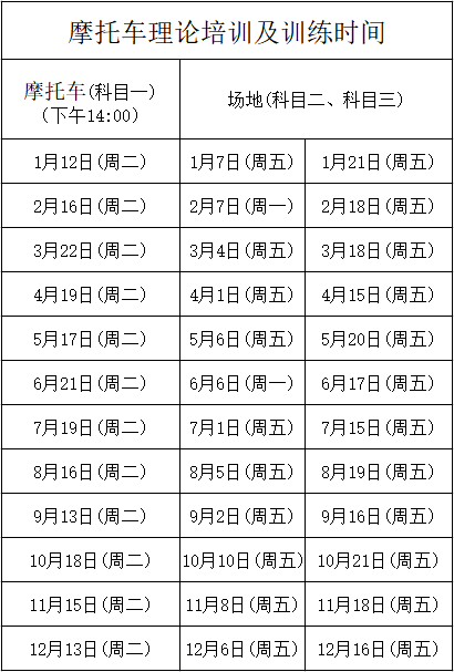 2022年温州交运洞头驾校考试和摩托车培训时间安排表