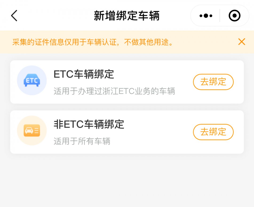 如您是非ETC用户:选择【非ETC车辆绑定】,根据提示选择您的车牌颜色并上传行驶证的正副页, 确认车辆信息后点击【申请绑定】,信息无误即绑定成功。