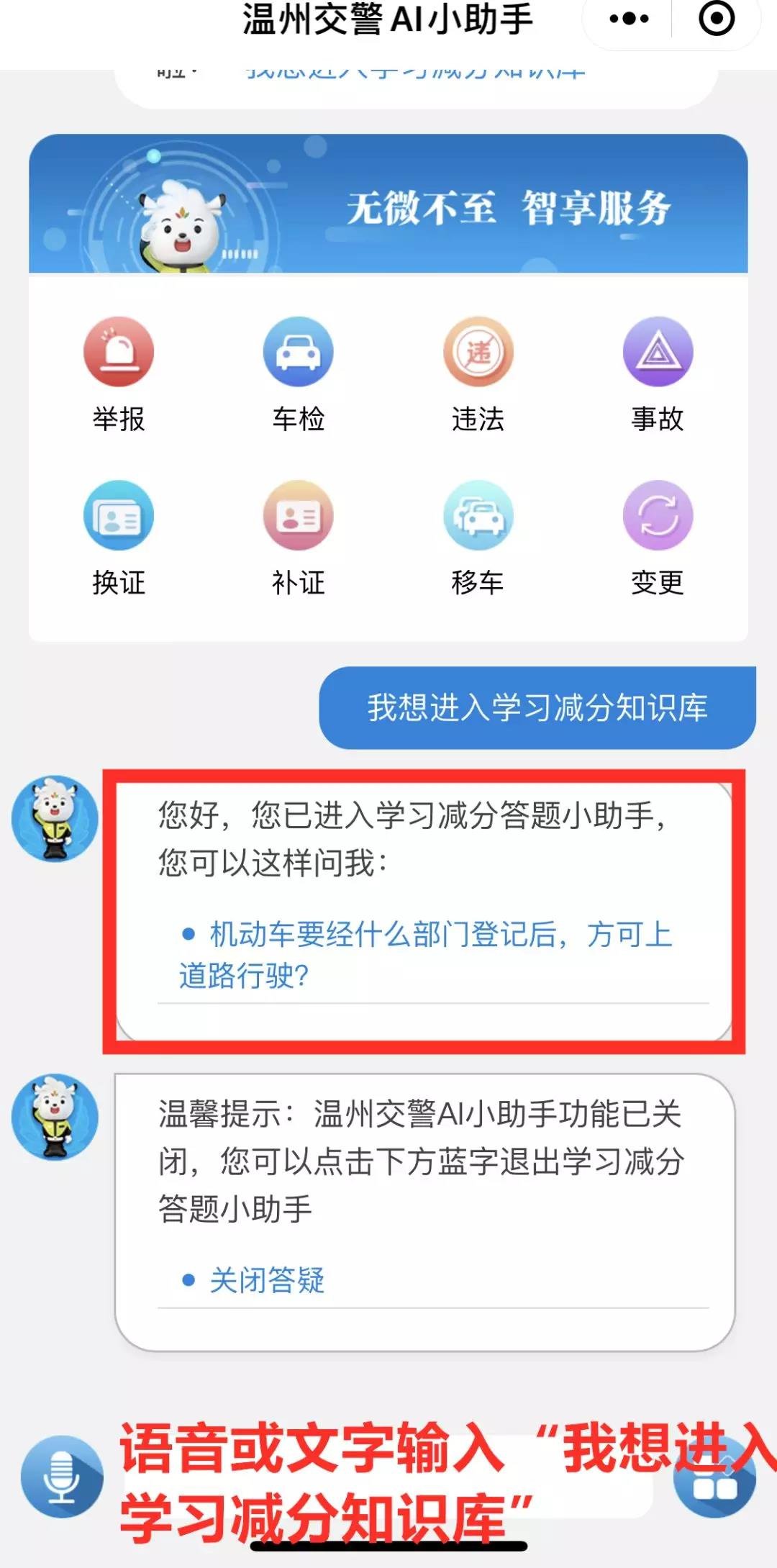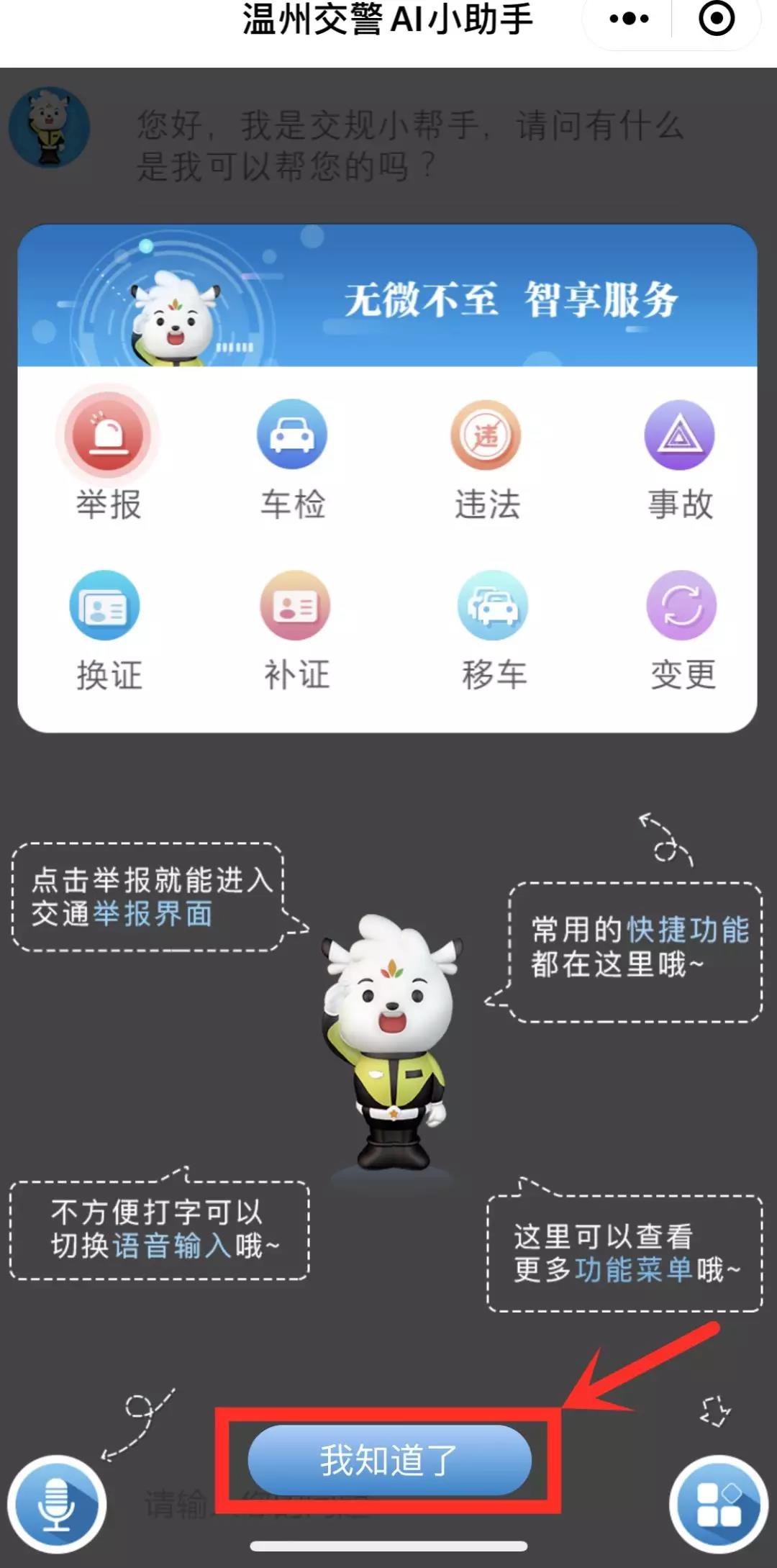 温州交警AI小助手可不止这一个功能哟,智能交互式沟通交流,真正实现集咨询与办理一站式服务!