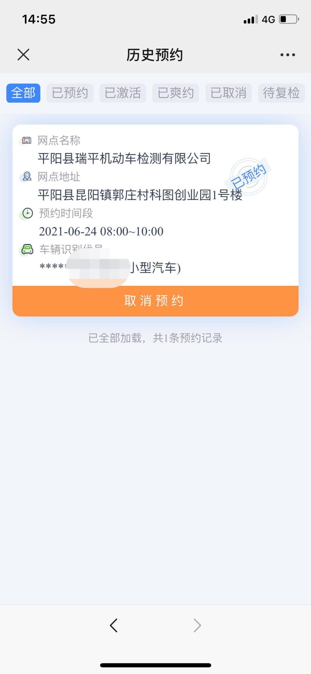 第六步:确认预约信息后,可在“我的预约”里查看预约信息,且凭此信息到约定的检测站上线检测。