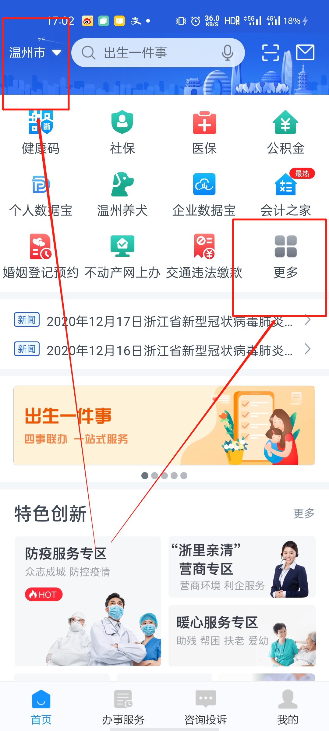 第二步,在页面左上角修改城市为温州市,并选择对应的区,接着点击页面中的“更多”;