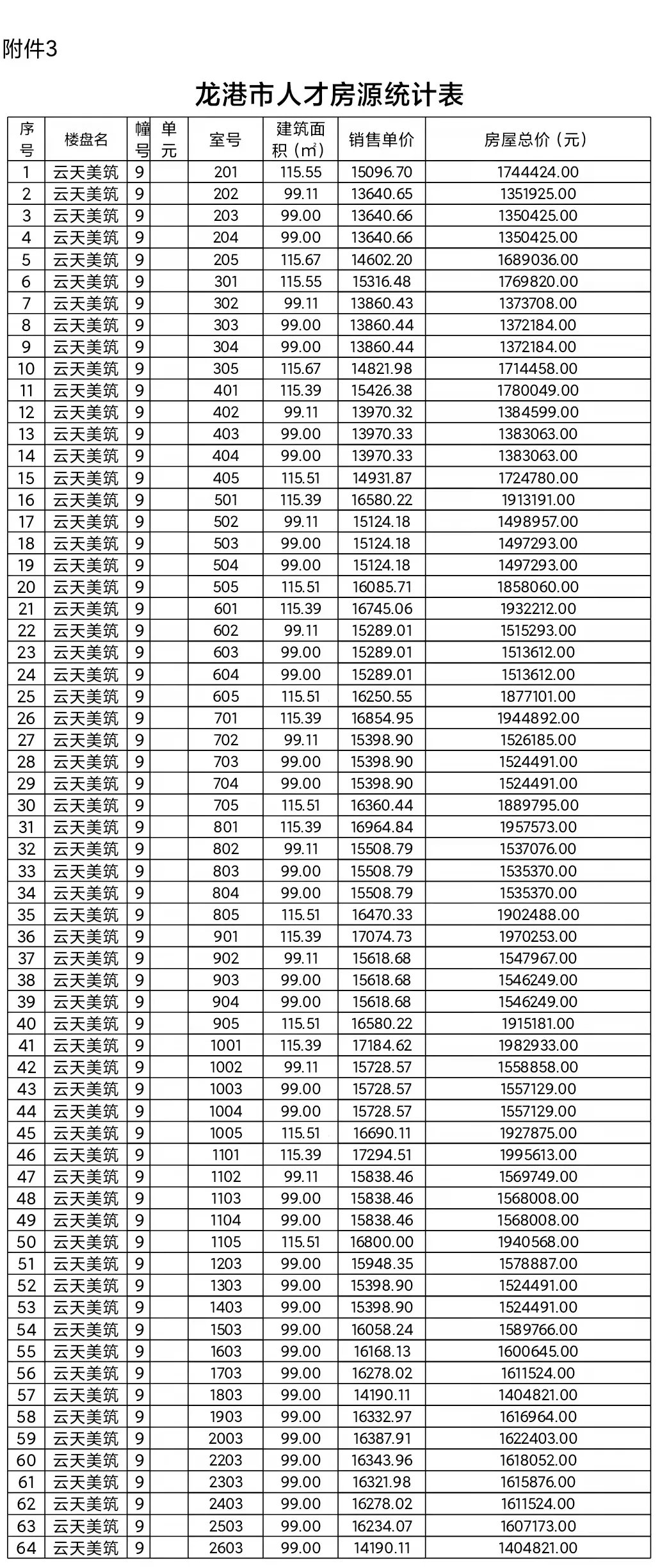 温州龙港市2021年人才住房配售房源明细表
