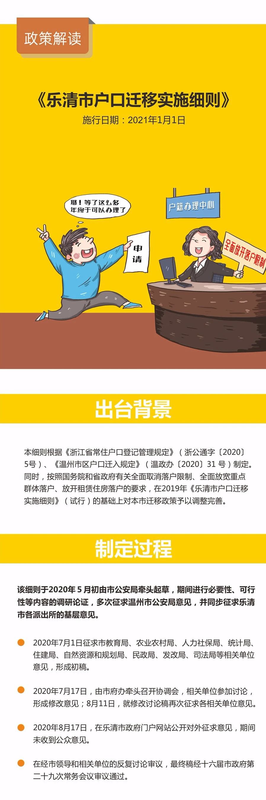 好消息!2021年1月起,温州乐清市内户口迁移政策将有大变化新政策全面放开落户限制,一图带你读懂