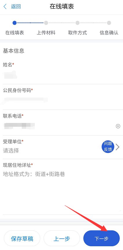 2、点击在线办理,按照所需内容进行选择和填写