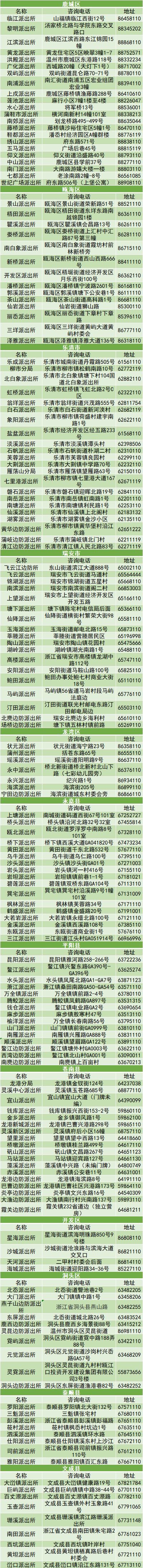 温州各区县派出所网点信息如下: