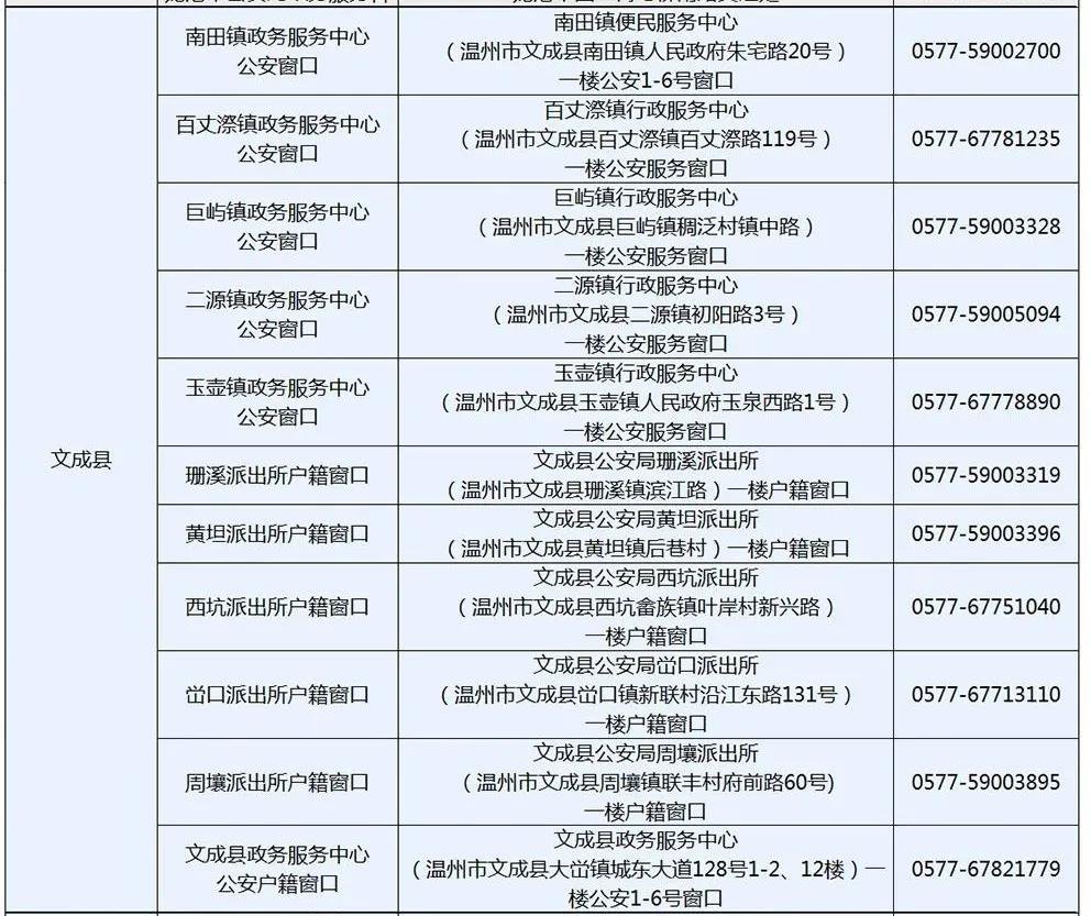 2020温州文成县户籍窗口地址+电话(2020温州文成县户籍窗口地址 电话查询)