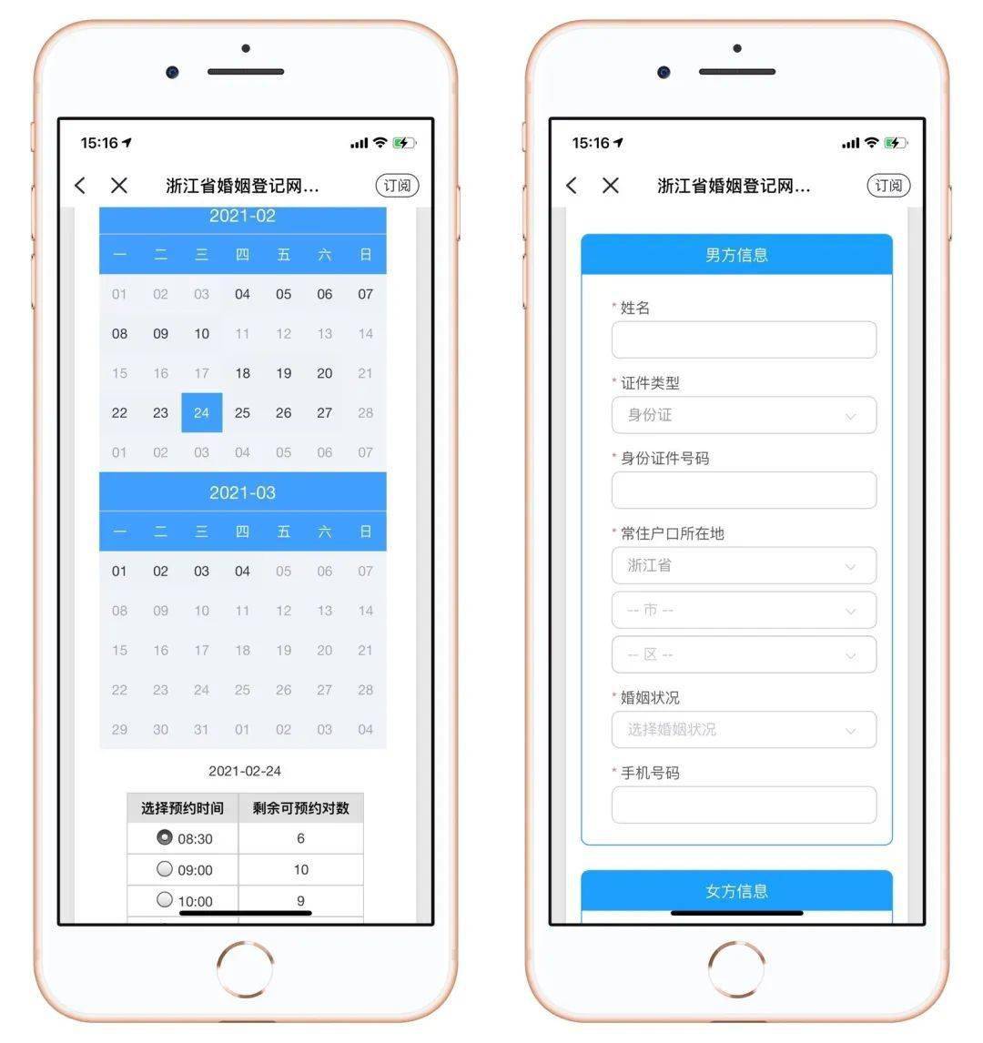 有需要的朋友可提前 2至30日登录 浙里办进入“浙江省婚姻登记网上预约”系统,在 全省范围内自主选择内地居民婚姻登记机关进行婚姻登记网上预约。