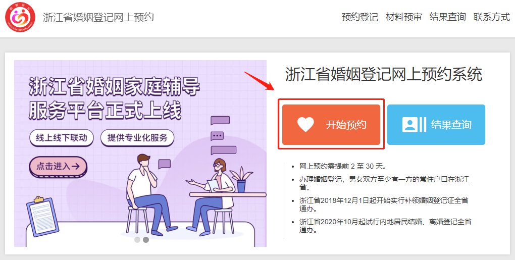 浙江省婚姻登记网上预约系统:https://jhyy.mzt.zj.gov.cn/
