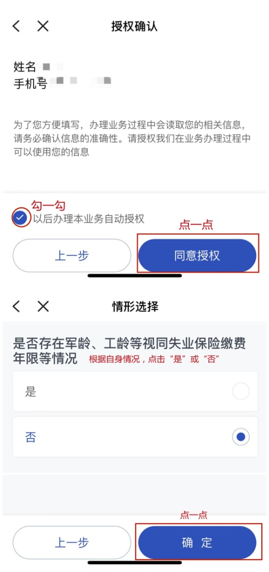 04、授权并按您实际情况选择是否存在工龄或军龄