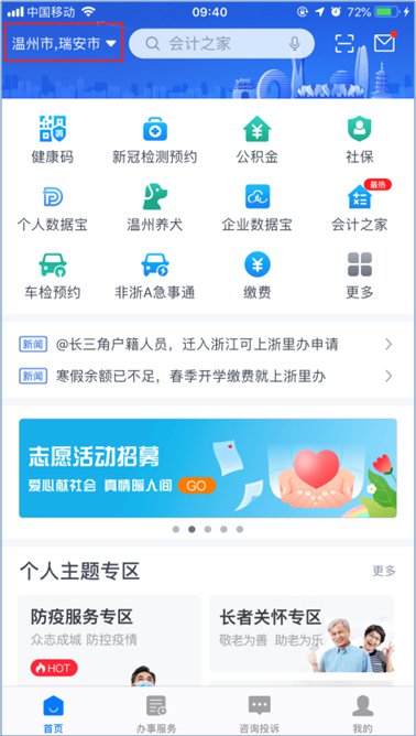 01. 下载“浙里办”App,选择个人用户登陆,定位选择【瑞安市】