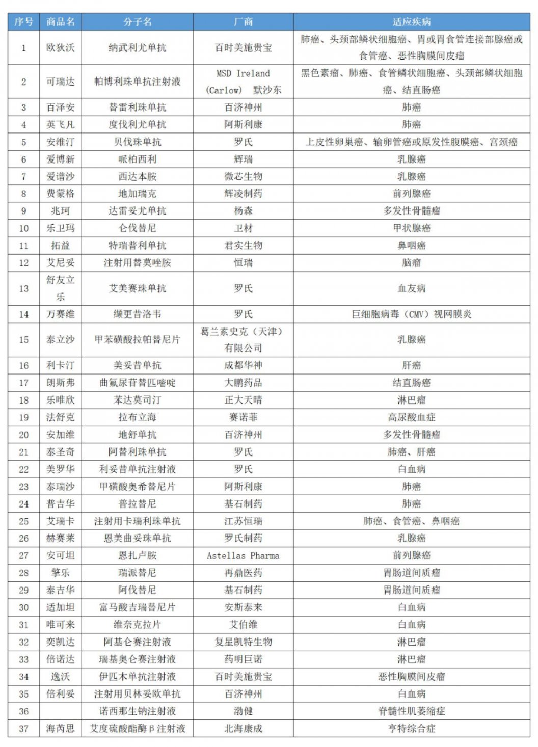 特药及罕见病目录