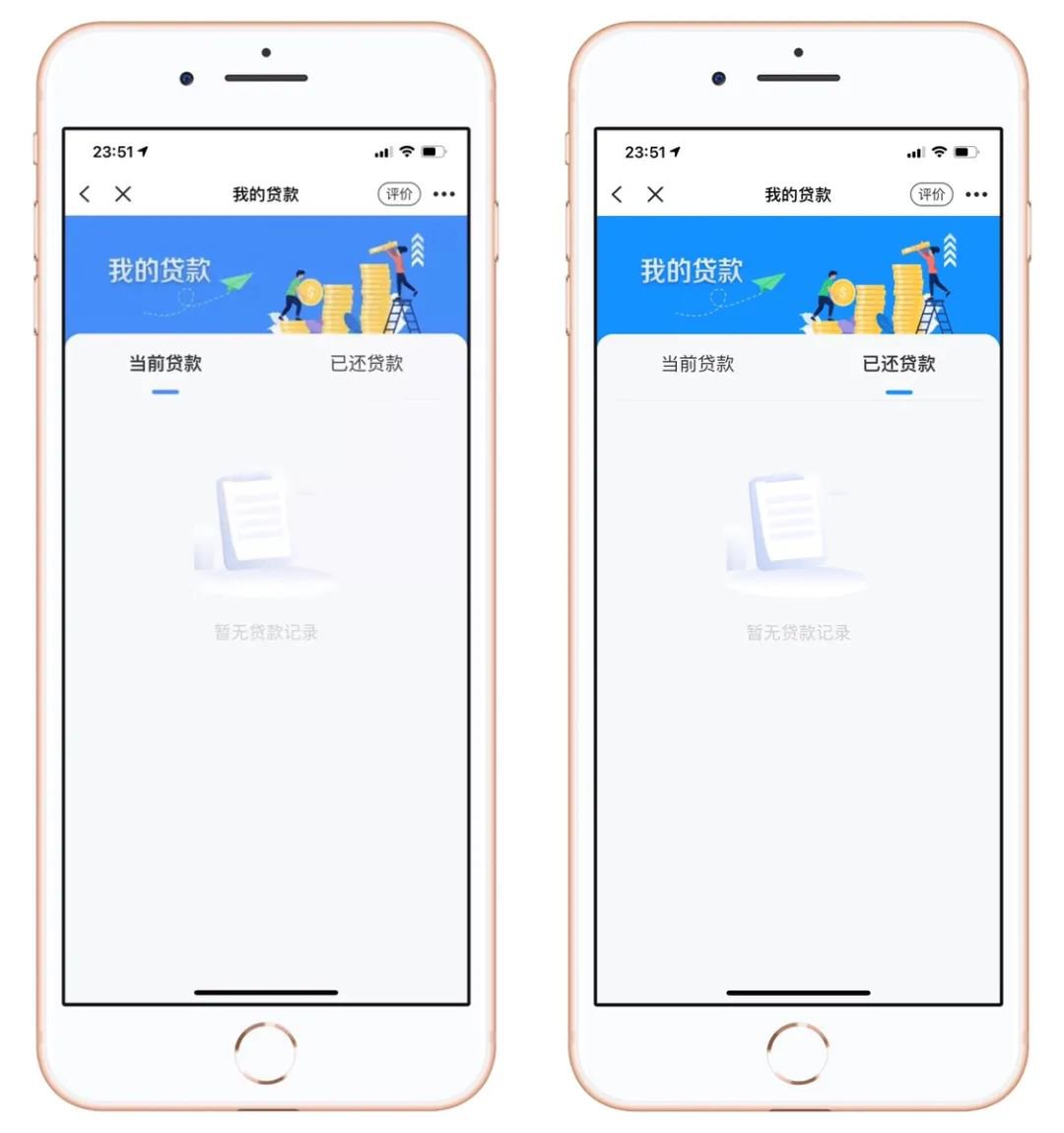 点击【我的贷款】,可发起贷款,也可查看现有贷款以及已还贷款。