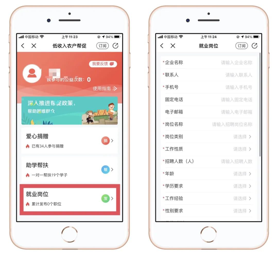 如果你有想提供给低收入农户的岗位,可在线发布信息。
