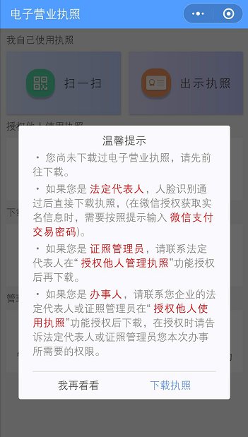 方式二:微信中搜索“电子营业执照”微信小程序安装。